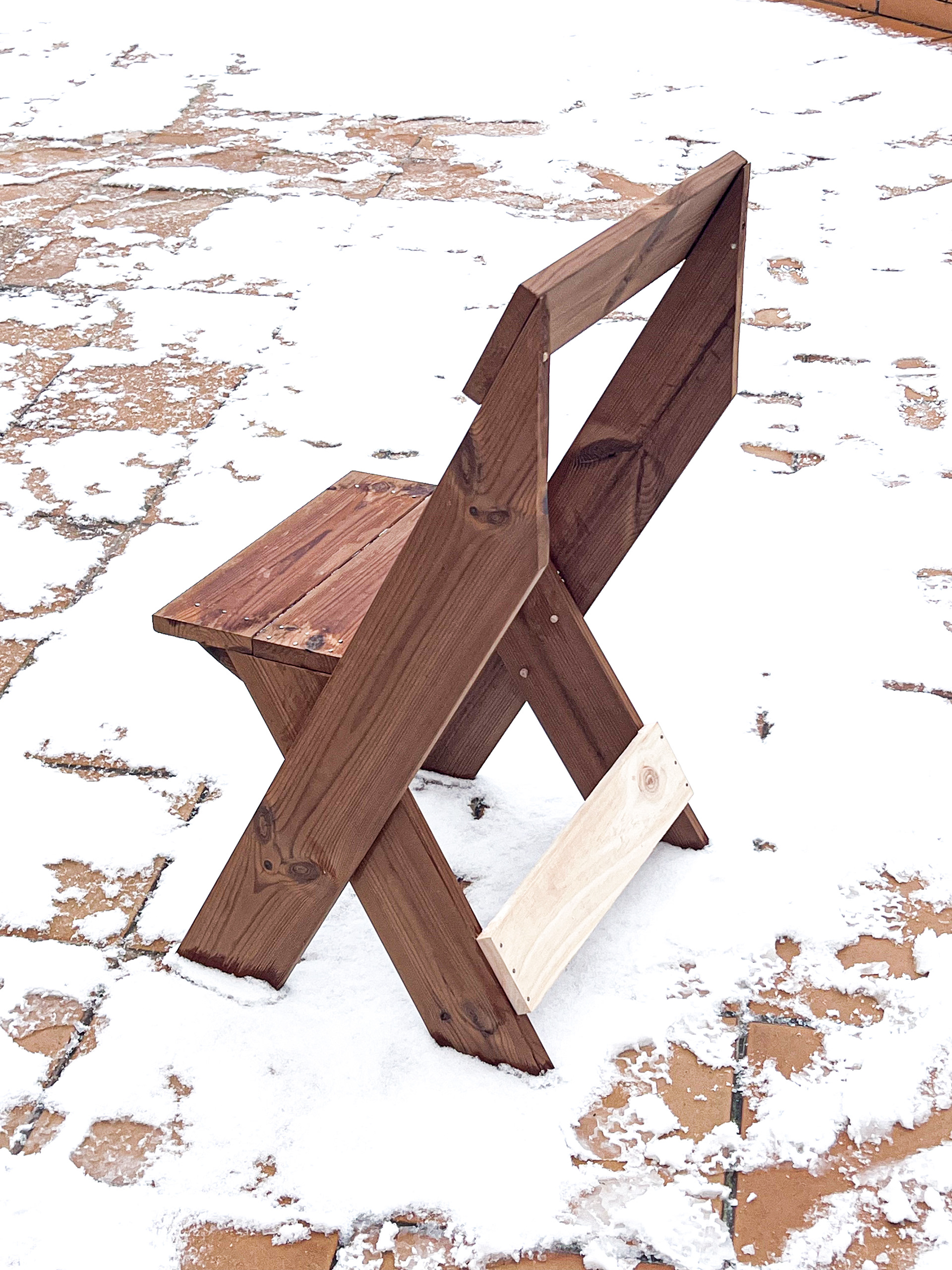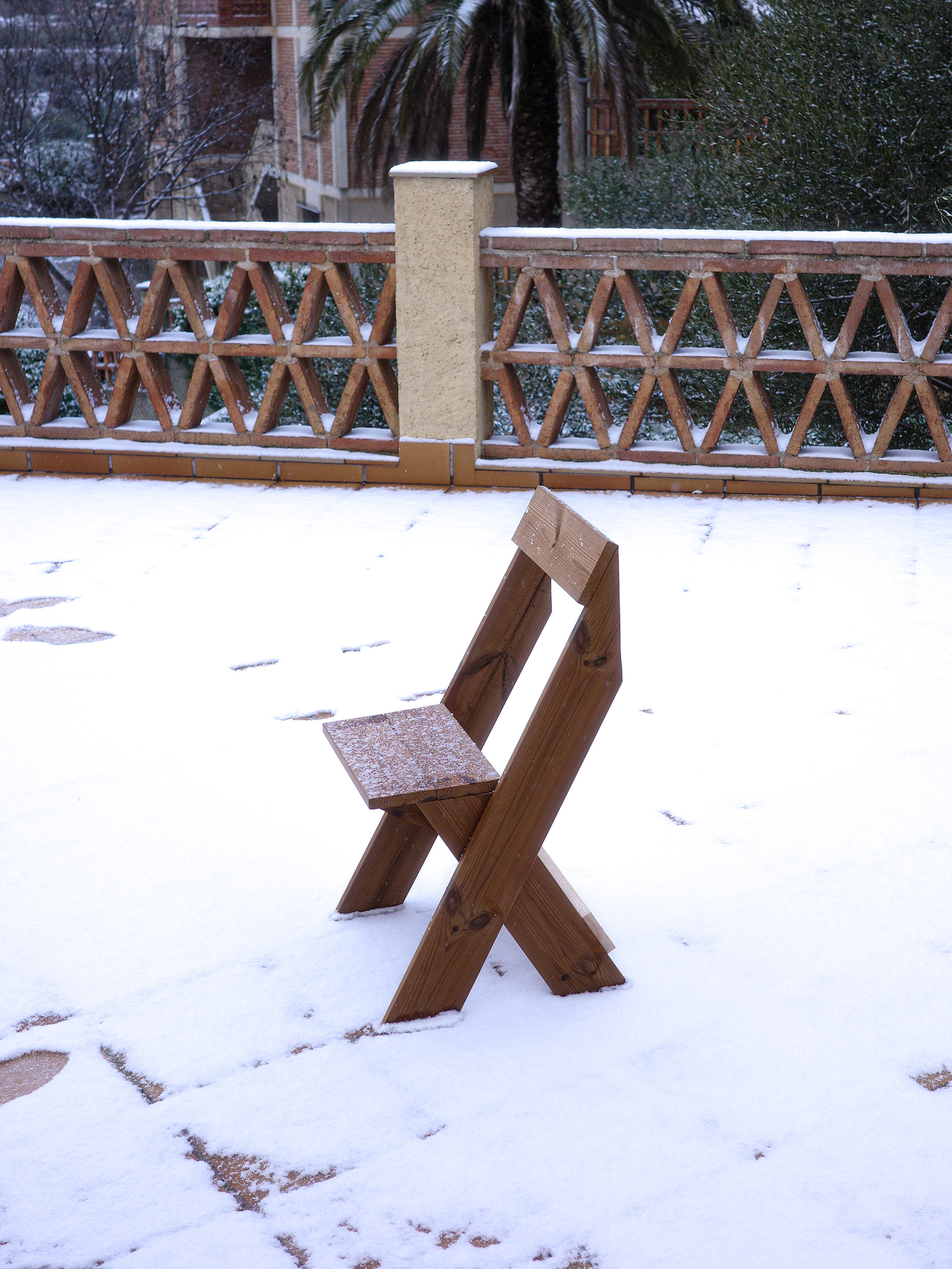 Francis, ha estat el temporal de pluja, fred i neu al dia de reis de 2026. Francis ha estat l’excusa per aprontar les vacantes de Nadal per autoconstruir una cadira d’exterior que s’ha finaliza amb l’arribada de la nevada. L’Última vegada que va nevar fou fa cinc anys pel Filomena, als reis del 2021, en aquella ocasió estaba inmersa en les proves d’oposició per la plaça 711 de Disseny de Producte.